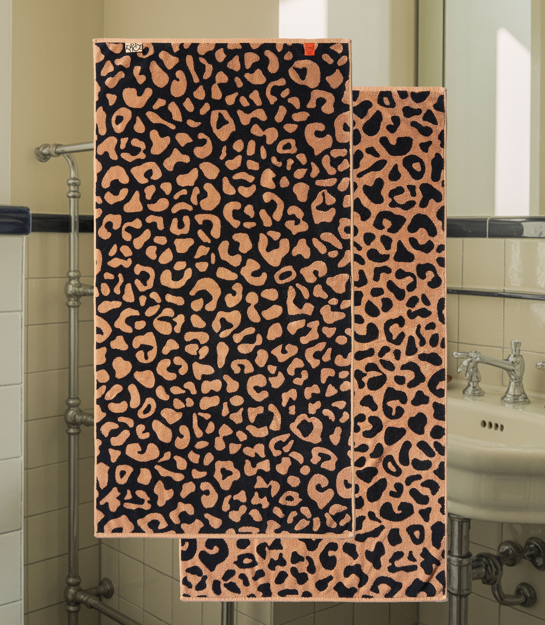Nature, interpreted. A refined leopard motif brings warmth and texture without overpowering the room. The Typical Stretch Towel™ is woven from long-staple cotton with a measured dose of stretch, delivering softness with structure that dries quickly and maintains its shape with no lint or pilling. Patent pending.
